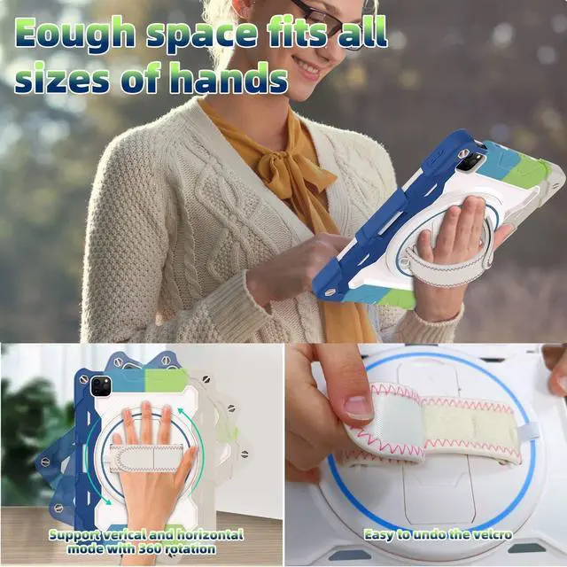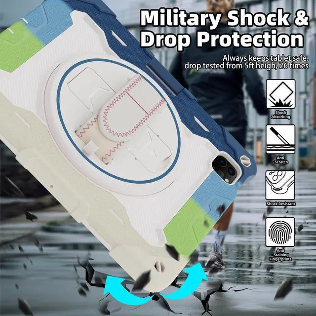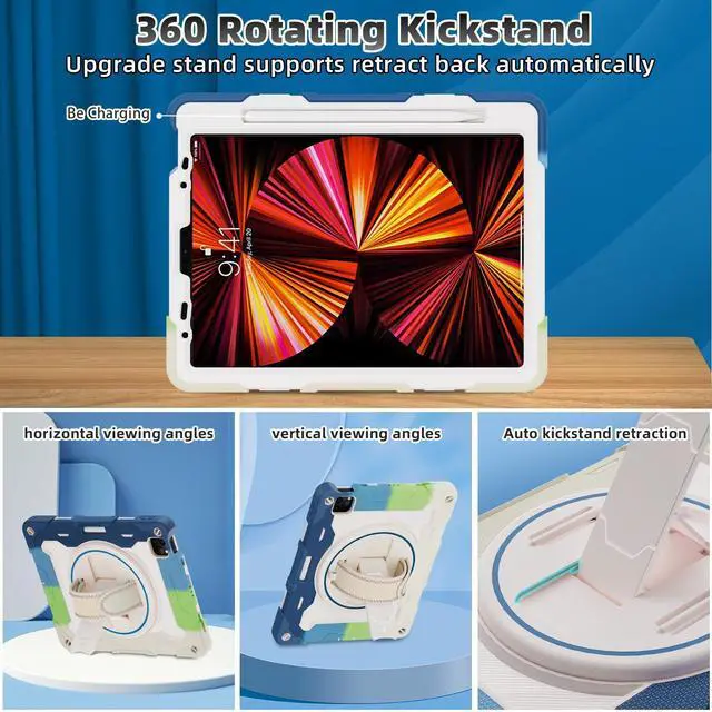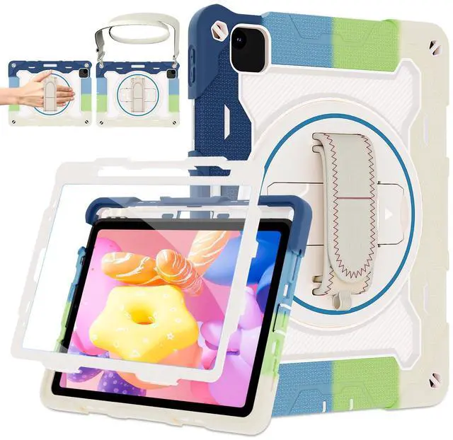 ROSROME For iPad Air 5th 4th Generation 10.9 inch Case with Screen Protector [15ft Drop Protection] iPad Pro 11 Case 4th 3rd 2nd 1st Gen (2022 2021 2020 2018) for Kids W/ 360 Stand Hand/Shoulder Strap