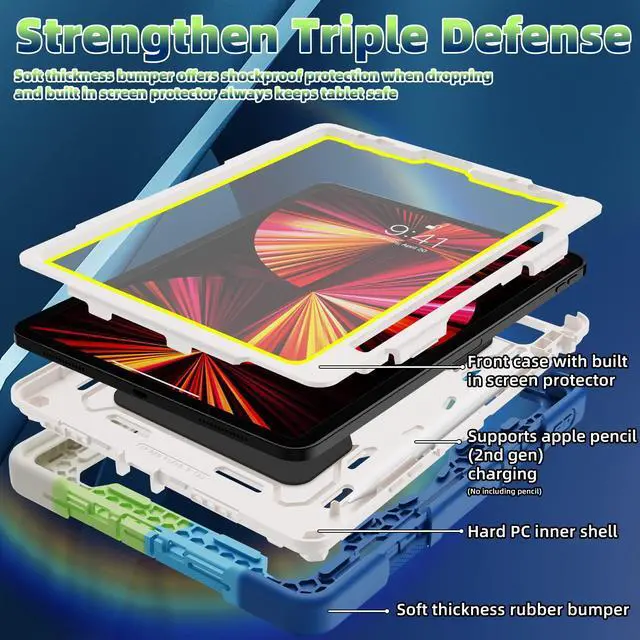 [ Built in HD Screen Protector] Case for iPad pro 11 inch and iPad air 4th/5th generation 10.9 inch made of silicone and rubber are very flexible and offer great grip, shock resistance. Built in screen protector and keep screen of your iPad from cracking and scratching, eco-friendly durable case for kids