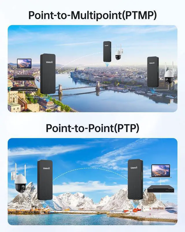 Reliable 5.8GHz Connectivity: Operating on the 5.8GHz frequency band, UeeVii gigabit wireless bridge provides increased bandwidth for ultra-fast data transfer, superior interference resistance and low latency, wifi extenders and signal boosters for home ensuring a stable connection for your shed, workshop, outbuildings, guest house