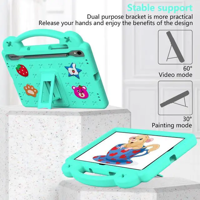 Shockproof: Made in full eva material, snug fit for tab s9 fe, ensure tablet in full protection. What is more,the material for 4 courner and camera port is specailly thicken, which is double buffer shockproof for better protection