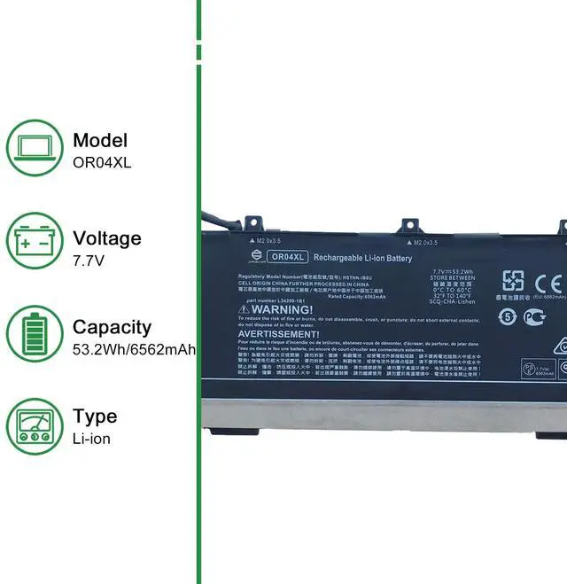• Replacement for Part Number: OR04XL HSTNN-DB9C L34449-002 HSTNN-IB8U L34209-1B1.