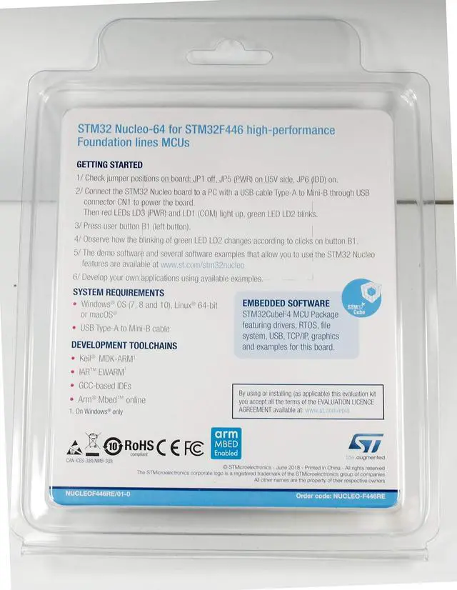 High-performance foundation line, ARM Cortex-M4 core with DSP and FPU, 512 Kbytes Flash, 180 MHz CPU, ART Accelerator, Dual QSPI ^^ On-board ST-LINK/V2-1 debugger/programmer with SWD connector ^^ Can be powered from USB ^^ Three LEDs, Two Push-buttons ^^ Support of wide choice of Integrated Development Environments (IDEs) including IAR, ARM Keil, GCC-based IDEs