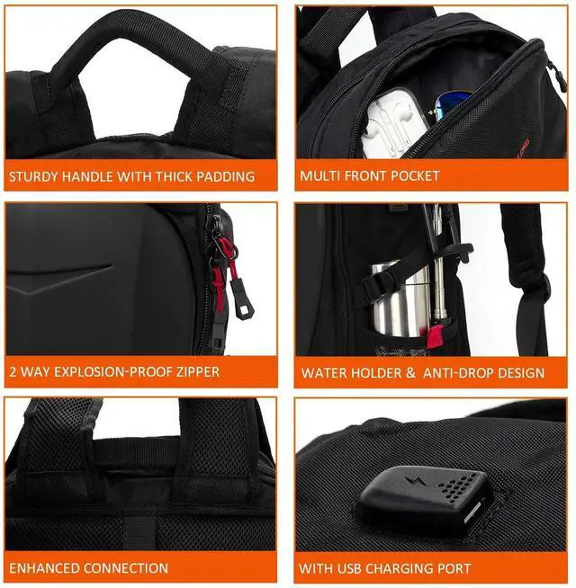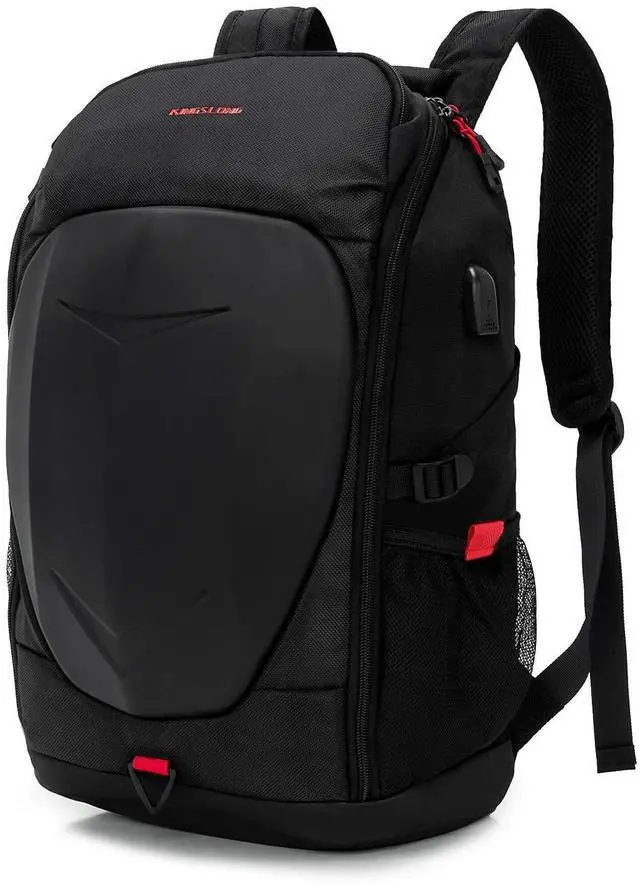 (Note: the power bank is not included) ^^ Large capacity & MultifunctionThe gaming motorcycle backpack equip with varies function pockets, provide the roomy space for your bulk stuff, enough for your daily usage and the backpack looks slim cool. The pockets and loops also dedicated to the game kit: mouse, hard drive, keyboard, powerbank, sunglasses, headphones, phone, USB sticks. While you could also use it for a 5-7 days trip. ^^ Unique design & ComfortableApply high quality EVA material, elastic and breathable sponge fabric that ventilate perfectly. Ergonomics and adjustable padding shoulder straps and sturdy handle offer you comfort carrying for a long time. ^^ WarrantyBuy with confidence, we KINGSLONG offer 30 money back service, 12 month warranty with no hassle and lifetime friendly service. If you have any question about your purchase, please kindly contact us through the customer service,