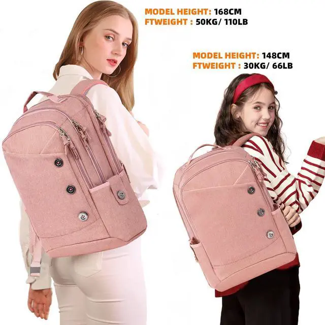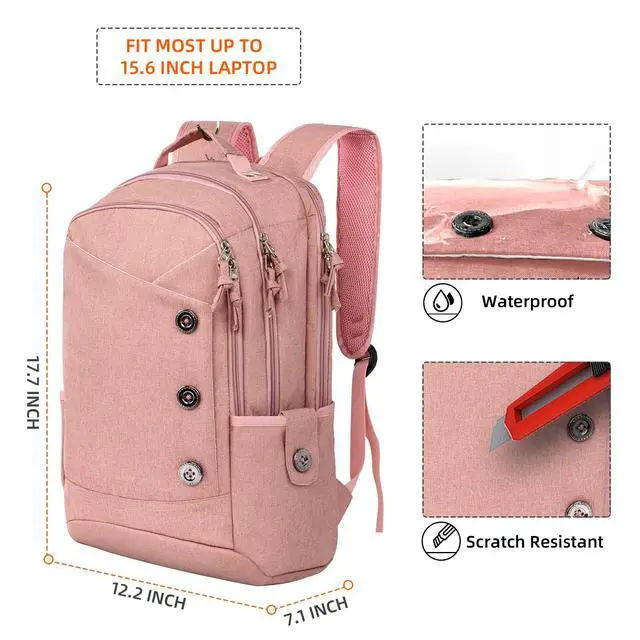 Dimensions & Multipurpose 17.7 x 12.2 x 7.1 inch, the laptop backpack for women men fits 15.6 inch laptop computer. Suitable work, travel, multipurpose daypack, camping, hiking etc. This product is not suitable for children aged 12 and below ^^ Well Made & Comfortable The stylish laptop backpack 15.6 inch built in super lightweight polyester fabric, anti tearing & scratching & durable. The shoulder strap use thick breathable sponge than normal bag and the airflow backing system with extra padding provides maximum back support, more comfortable & district the press more well.