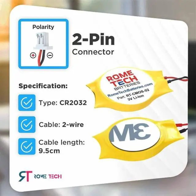 Rome Tech DELL CMOS Battery best suits to replace your broken or non-working old BIOS battery - we provide premium quality only ^^ CR2032 batteries for laptop computers COMPATIBLE with Dell XPS 12 9Q23 / Dell XPS 15 L521X / Dell XPS 15Z L511Z / Dell XPS 12 12-9Q33 P205 / DELL Latitude E5440 ^^ Enjoy extended reliability of the DELL RTC battery and heat shrink of a high caliber - the CMOS laptop battery will last you for a long time ^^ The size of the DELL CMOS battery is extremely small - will fit in almost any electronic device requires 3V Battery connector with 2 pins and 2 wires ^^ Quick and simple DELL CMOS Battery installation takes only 10 minutes of your time.