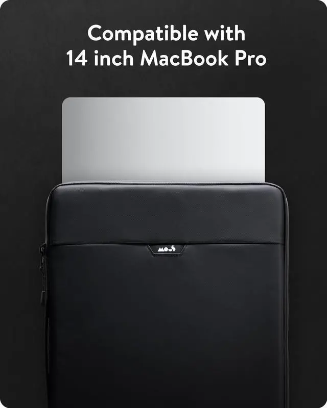 A retractable carry handle offers ultimate versatility for on-the-go life. Slip pocket on the rear of the sleeve provides additional storage for items like an iPad. ^^ COMPATIBILITY Mous MacBook 14 inch sleeve fits 2021 and 2023 14" MacBook Pro as well as 13 2016 2020 and 2022 MacBook Pro; MacBook Air 2020 with Retina display; MacBook Air 2020 M1; MacBook Air 2022 ^^ WATER AND DUST RESISTANCE - Whether you get caught in the rain or accidentally spill something at your desk, our MacBook sleeve has a reverse-coil zip to protect your device from water damage.