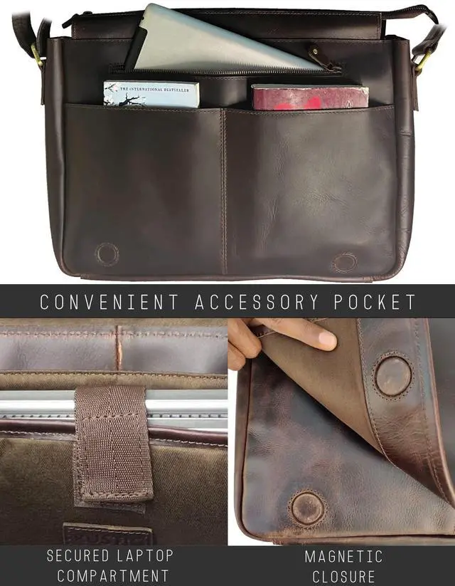 A LEATHER YOU CAN TRUST: Made from Full grain Buffalo leather, this Laptop bag has a rustic and distressed appearance that not only looks great but feels and smells amazing as well. Crafted by expert artisans and rugged materials, ensuring it will last for years to come.
