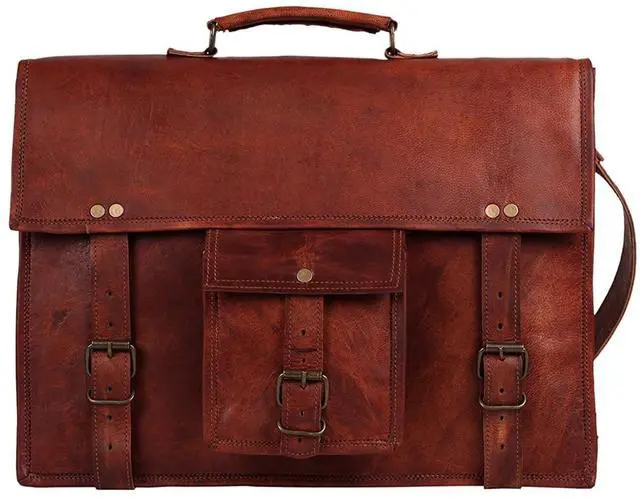 PREMIUM FULL GRAIN LEATHER: Experience unparalleled quality with our laptop bag crafted from full grain goat leather. Its rich, distressed finish offers a sophisticated rustic look that enhances with age, while exuding a delightful leather aroma. Expertly designed for durability, it promises to be a lasting companion in your professional journey.