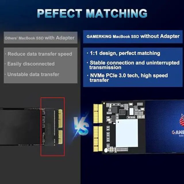 • [(1: 1 Design)] 100% adaptable to the original interface, no need adapter. This Macbook Pro/Air SSD delivers a quick and affordable upgrade solution that's perfect for photo and video editing, gaming, and other heavy workloads applications.