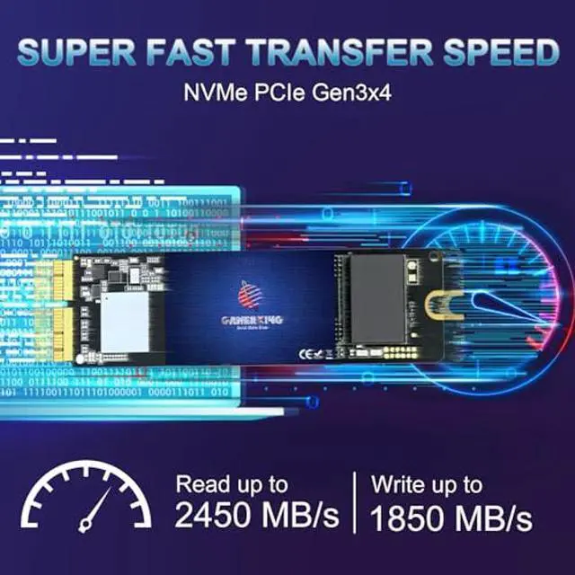 • [(Boost Your Old System)] This macbook ssd adopts NVMe PCIe Gen 3.0x4 technology, read/write speed up to 2450MB/s / 1850MB/s, you can access and transfer files faster, delivers a performance boost to your workloads, so there's no limit to your creativity and productivity. Various capacity for your choice: 256GB 512GB 1TB 2TB.