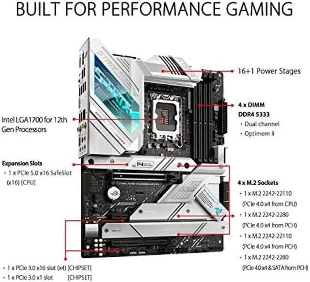ROG STRIX Z690A GAM WF D4 Motherboard with Intel LGA 1700 socket: Ready for 12th Gen Intel Processors,Optimal Power Solution: 16+1 DrMos with ProCool II power connector, high-quality alloy chokes and durable capacitors to support multi-core processors
