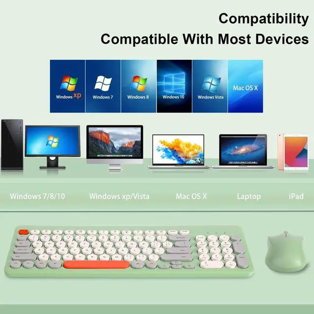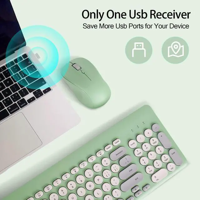 Arcwares Wireless Keyboard and Mouse Combo, Sweet Green Cute Keyboard, 2.4G USB Ergonomic Full-Sized Mute Keyboard for Computer, Laptop, PC Desktops, Mac