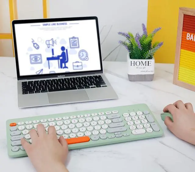 [(Beautiful and Ergonomic Design)] 2024 latest styles, sweet and lovely color matching, bring you visual enjoyment and make you feel good all day long. The slim keyboard offers great typing angles, allowing you to work comfortably for hours.