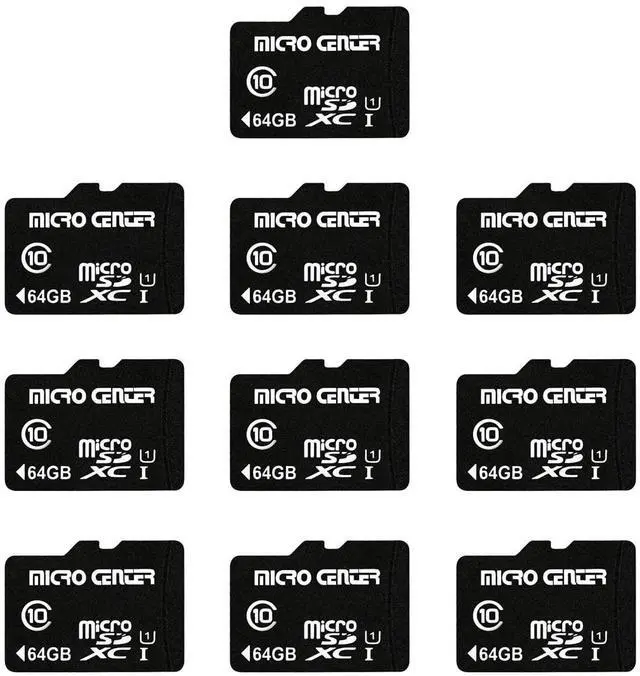 Micro Center 64GB Class 10 MicroSDXC Flash Memory Card 10 Pack with Adapter for Mobile Device Storage Phone, Tablet, Drone & Full HD Video Recording - 80MB/s UHS-I, C10, U1 (10 Pack)