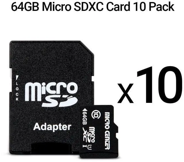10-Pack microSDXC Card. 64GB micro sd card includes an SD adapter that is suitable for both microSDXC and SDXC enabled host devices including smartphones, tablets, game consoles, digital cameras, desktops, laptops, etc.