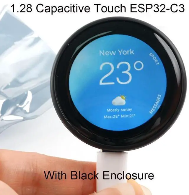 DIYmalls 1.28" inch ESP32-C3 Round Display ESP32-2424S012C-I-Y (B) IPS Capacitive Touchscreen with Black Case 240x240 TFT LCD Module ESP32-C3-MINI-1U Development Board GC9A01 for Arduino IDE