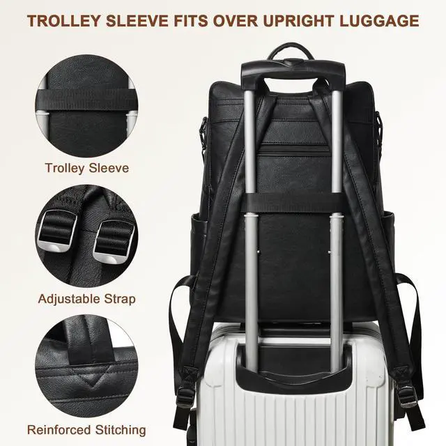 [(Fashion Padded Computer Backpack Laptop Bag)] :Work backpack Fit up to 15.6" laptops well.This purse backpack for women is padded on bottom.When traveling with this travel backpack and your suitcase,you can utilize the luggage strap attached to the leather laptop backpack for women,eliminating the need to carry it on your shoulders and effortlessly alleviating physical strain