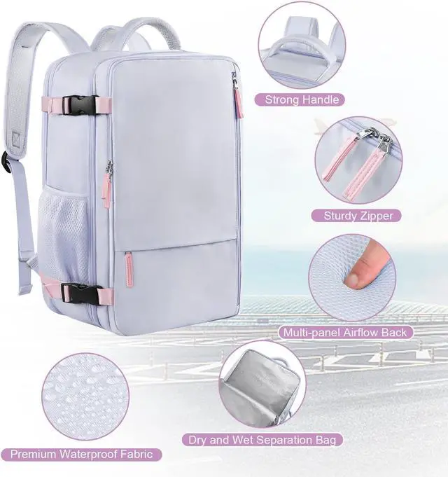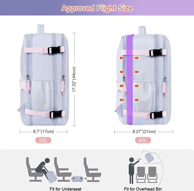 It is suitable for 17.3 inch laptop. The carry on backpack can be extended to 40L, you can take it for 3-7 days travel.