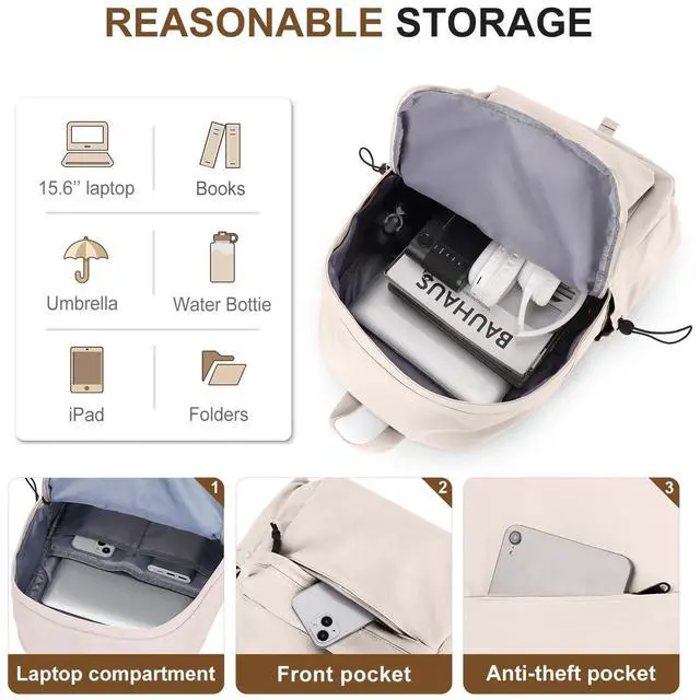 White Bookbags For Teen Girls Boys Waterproof College Backpack Middle School bags Lightweight Travel Rucksack Casual Daypack Laptop Backpacks For Men Women