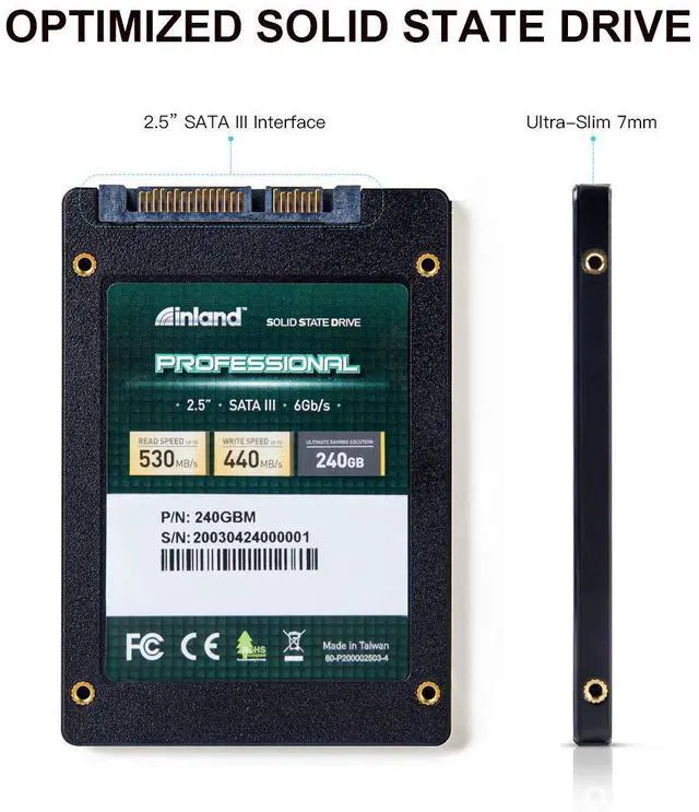 • SSD Capacity 240GB. Sequential Read/Write Speed up to 530MB/s and 440MB/s respectively