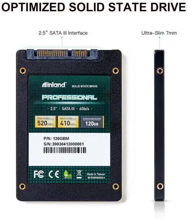 SSD Capacity 120GB. Ideal for mainstream PCs, laptops and ultra books for personal, gaming and business use ^^ Sequential Read/Write Speed up to 520MB/s and 410MB/s respectively;