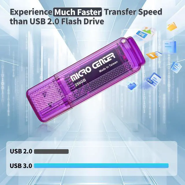 Offered in multiple colors so you can easily color-code your saved information. Cap prevents damage to the USB plug and the rear loop easily attaches to a keychain to prevent misplacing your thumb drive ^^ RELIABLE DATA STORAGE OPTION The Micro Center USB Flash Drive is constructed from quality components and strictly tested to offer high performance. Backed by a 2-year war-ranty, providing worry-free use. A thumb drive you can count on