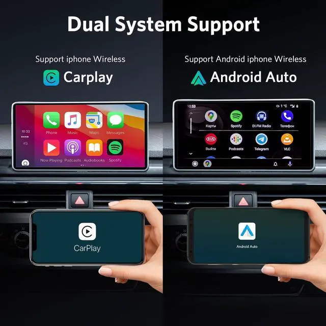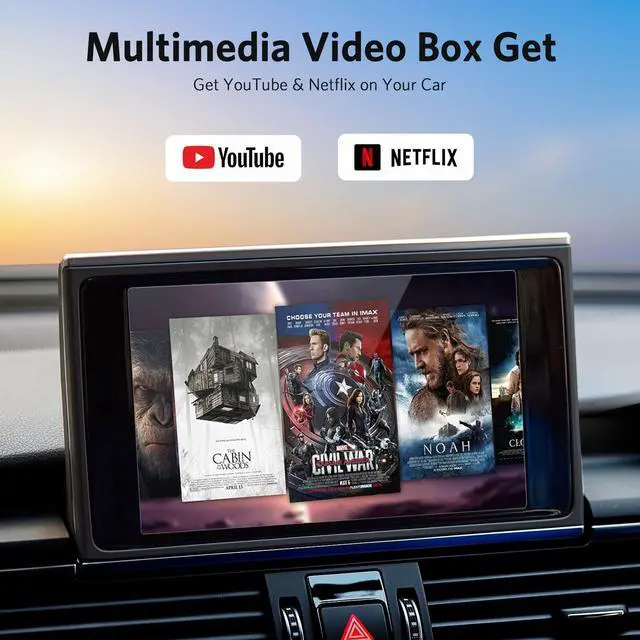 Introducing FitAlly wireless CarPlay and android adapter for factory wired CarPlay, designed to enhance your driving experience like never before. Supports the conversion of wired CarPlay to wireless CarPlay and wired Android Auto to wireless Android Auto. With its easy plug and play installation and automatic connection, you can enjoy the full range of CarPlay features wirelessly and without any hassle. This product is pre-installed with video soft applications such as YouTube and Netflix. After you connecting the WIFI in Settings, you can enjoy the online videos on the car factory screen.