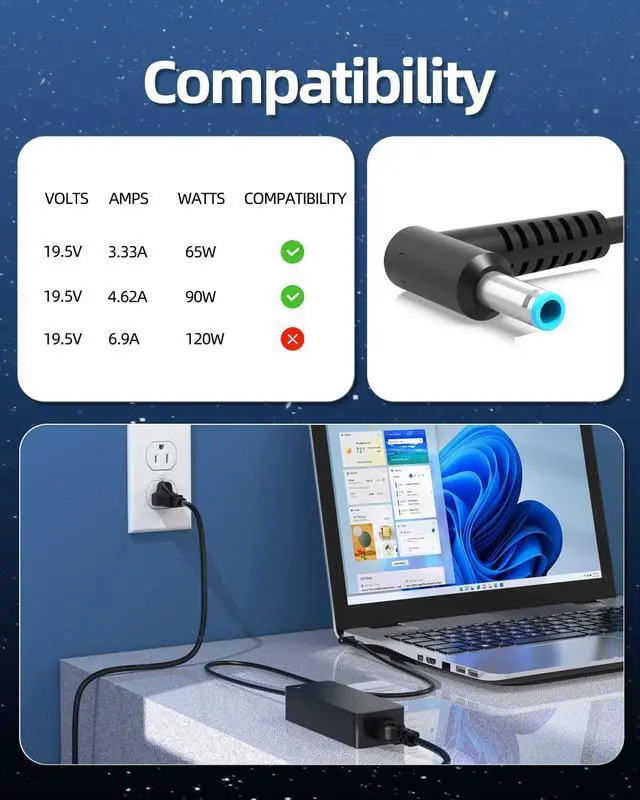 • Fit for HP Spectre 15-eb1097nr 15-eb0000 X360 15-eb0043dx Envy 17m-ae111dx 17-cg0013dx 17m-ae1000 X360 15-es1005tx Laptop [Do not buy if your laptop requires more than 4.62A].