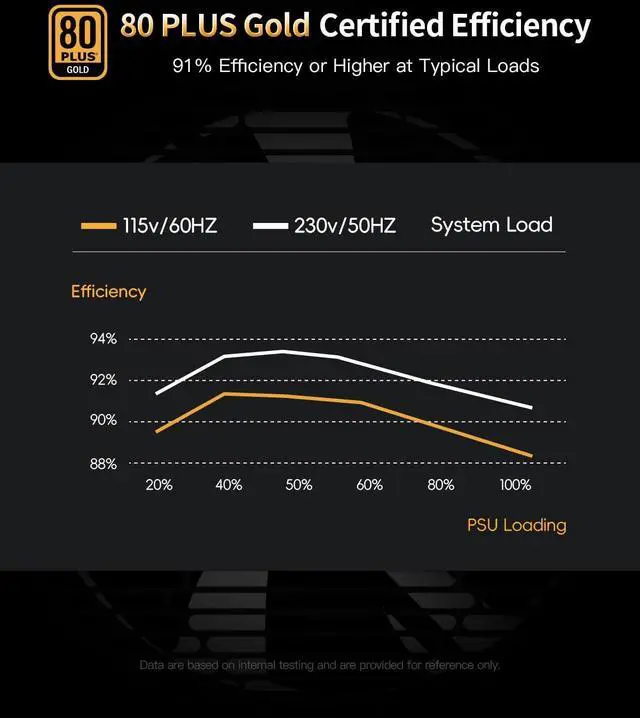 80 PLUS Gold Efficiency: Superior energy savings with over 91% efficiency at typical loads, reducing heat and enhancing system performance.