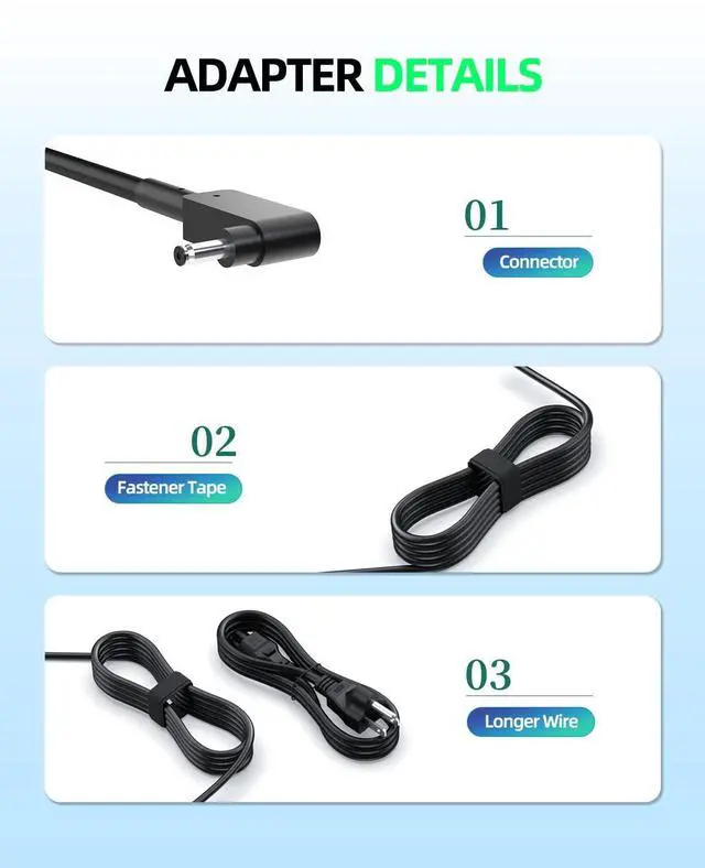 Output:19V 2.37A 45W Input:100-240V 50-60Hz.Package Includes: 1 X AC Adapter, 1 X Power Cord