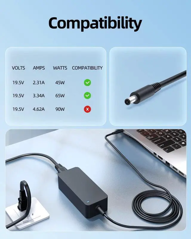 Flawless Compatibility --- This 65W ( 19.5V / 3.34A ) Charger Fit for Dell Latitude 3520 3420 3320 3510 3410 3500 3400 3390 3490 3590 3301 3310 Laptop [Do not buy if your laptop requires more than 3.34A ] ^^ Portable and Tidy Design --- Compact and lightweight, power cord using Velcro storage, keep clean and not messy, can easily put into the computer bag or handbag, whether it is more convenient for business trips or daily use ^^ Certified Safety --- This item is up to UL's nationally recognized standards for high-level electronic safety, only products with the top quality, workmanship & safety level in the industry can pass the extremely stringent quality tests.