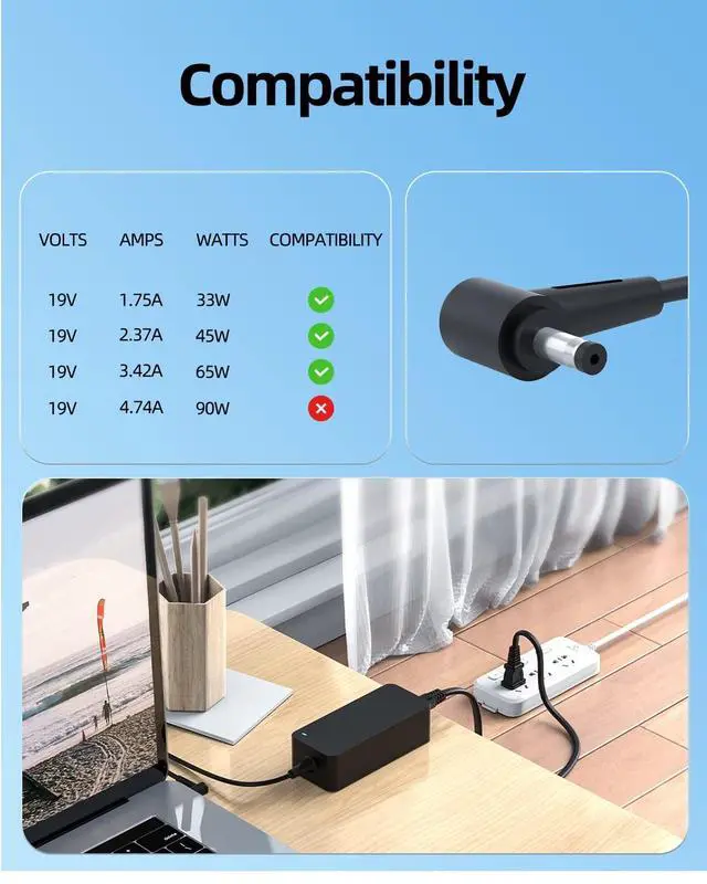 UL Listed AC Charger Fit for Asus R543MA R543M R543 R518U R518 R518UQ R518UA R518UB R558U R558 R558UQ R558UF Laptop Power Supply Adapter Cord