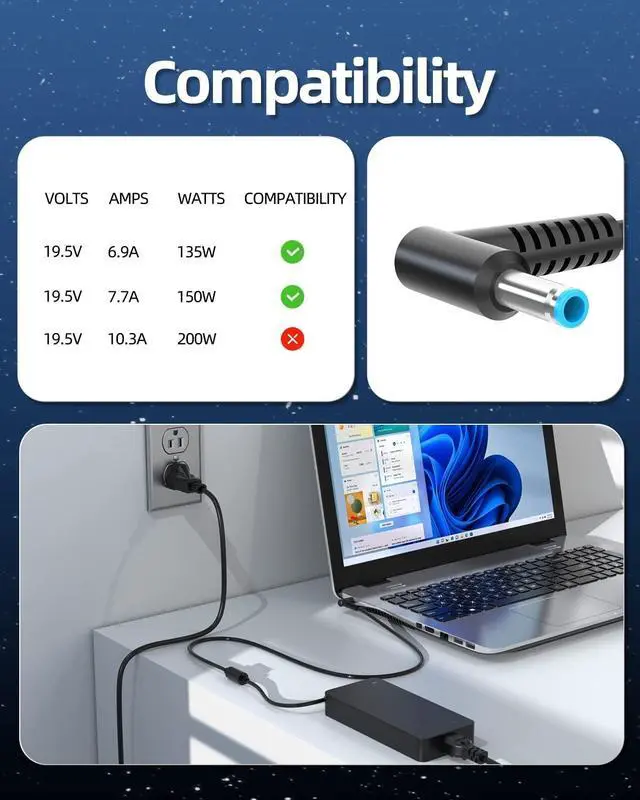 Safety: This item is up to nationally recognized standards for high-level electronic safety. ^^ Fit for HP Zbook Studio 15 G3 G4 Power Fury Create G7 G8 G9 G10 Zbook Fury 15 17 G7 Omen Pavilion Gaming 15 17 776620-001 917649-850 L32661-001 693707-001 Laptop [Do not buy if your laptop requires more than 7.7A ].