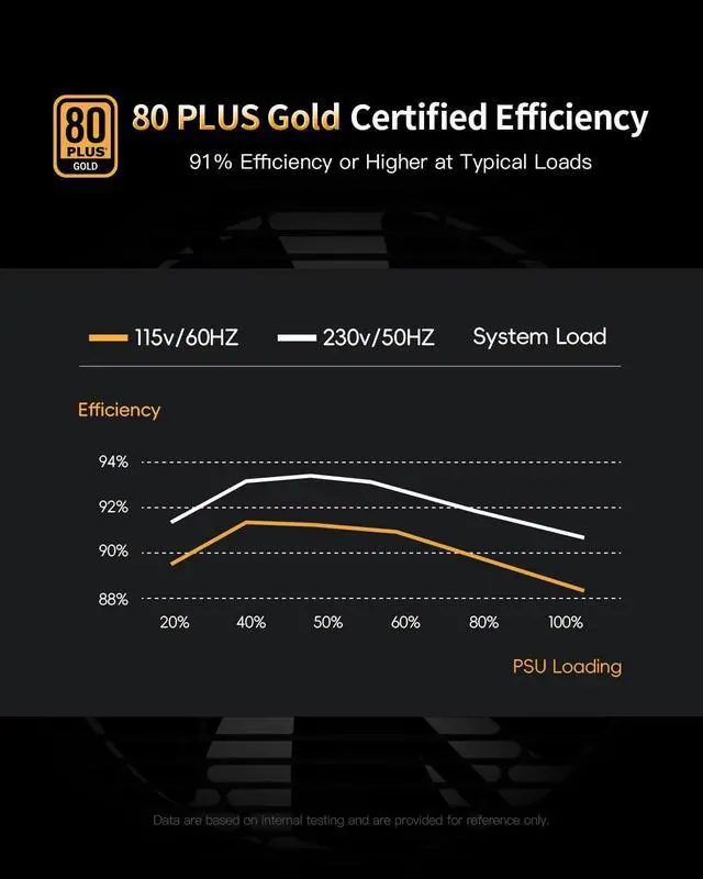PLUS Gold Efficiency: Superior energy savings with over 91% efficiency at typical loads, reducing heat and enhancing system performance. ^^ 120mm
