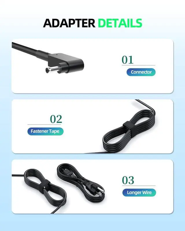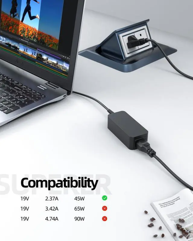 Output:19V 2.37A 45W Input:100-240V 50-60Hz.Package Includes: 1 X AC Adapter, 1 X Power Cord