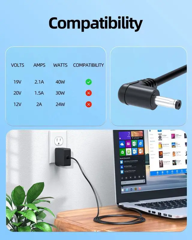 Fit for Toshiba Dynabook E series E10 E10-S1 E10-S2, fit for Satellite Pro C40 C50 C40-G C40-H C40-J C40-K C50-E C50-H C50-J C50-K laptop (Not fit for Dynabook X series & Tecra C40 C50, do not buy if your laptop requires more than 2.1A)