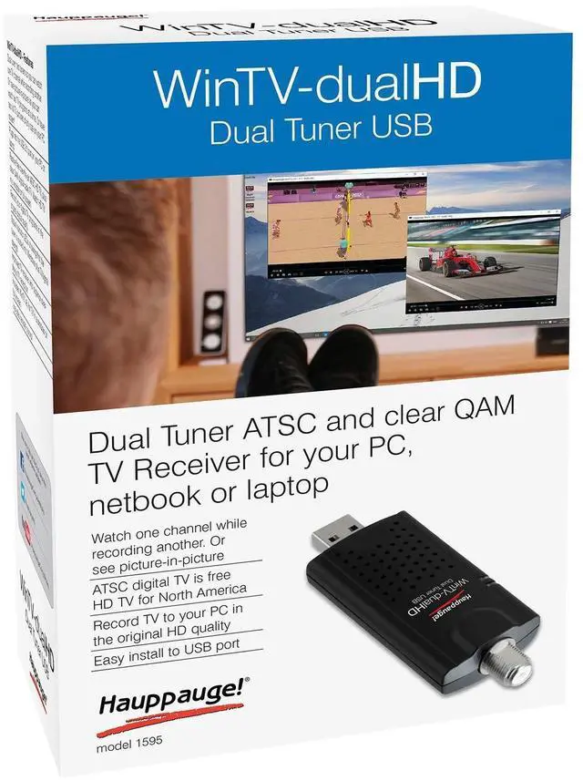 WinTV-dualHD is a Dual TV Tuner for your Windows PC. Plug into the USB 2.0 / 3.0 port on your Windows 10, 8 or 7 PC, and with the two built-in TV tuners, watch one channel while recording another. Or have picture-in-picture or two complete TV windows with the included WinTV v10 application for Windows. Watch, pause & record two channels of free over-the-air ATSC HD TV and clear QAM digital cable TV. Includes the WinTV-dualHD dual USB 2.0 /3. 0 TV tuner, portable TV antenna, credit card size remote control (with batteries) and includes activation code for download of WinTV v10 application for Windows.