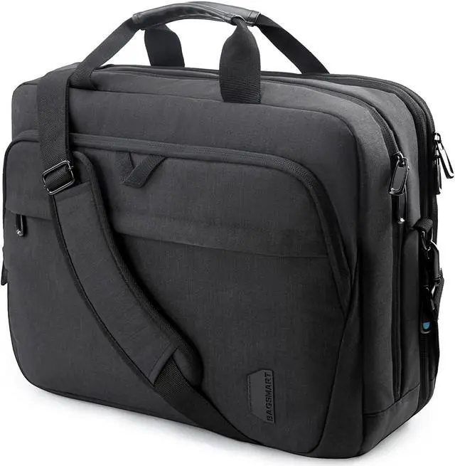 BAGSMART 18 Inch Laptop Bag, Expandable Briefcase, Computer Bag Men Women, Laptop Shoulder Bag, Work Bag Business Travel Office - Black
