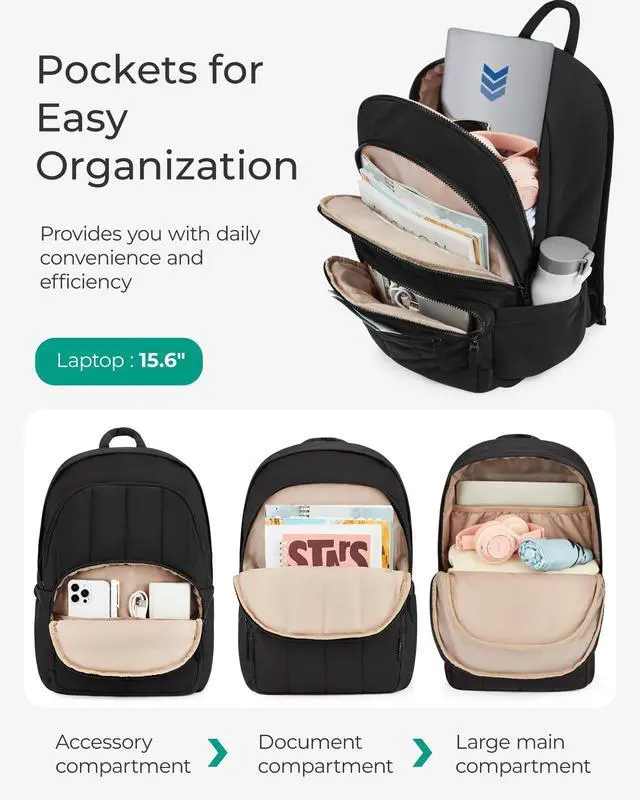 Spacious and Organized Storage: Stay effortlessly organized with this backpack for women.The spacious main compartment offers ample room for all your essentials. The padded laptop sleeve securely accommodates laptops up to 15.6 inches. Quilted backpack with multiple pocketsincluding three quick-access exterior compartments and two side pocketsyou'll have everything you need right at your fingertips. Dimensions: 17.3 × 11.8 × 7.9 inches