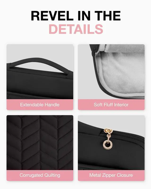 Perfect CapacityThe dimension of this laptop sleeve is 14.17''L x 0.98''W x 10.23''H. This 13-14 inch macbook sleeve case offers plenty of room to store your devices and items. Extra front zipped pocket to keep charge, mouse, cable, phone, memory cards, external hard drive, pens, 9.7'' iPad, etc.