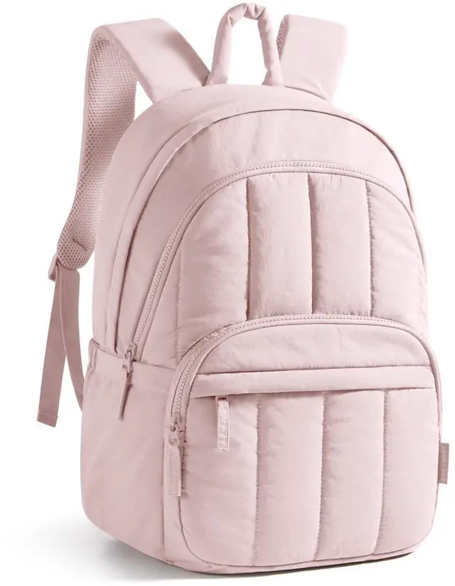 BAGSMAT Womens Backpack Travel Laptop Backpack for Women, Quilted College Laptop Bookbag, Work Back Pack for Women, Cute Computer Water-Resistant Casual Daypack, Puffer Soft Pink