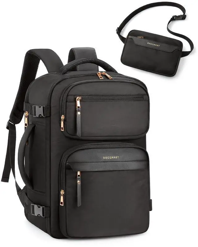 Comfort Meets Functionality: Crafted with user comfort in mind, carry on travel backpack is equipped with a breathable mesh back panel and thick shoulder straps tominimize strain during extended wear. The adjustable waist belt helps distribute weight for a customized fit, ensuring comfort whether youre commuting, traveling, or hiking