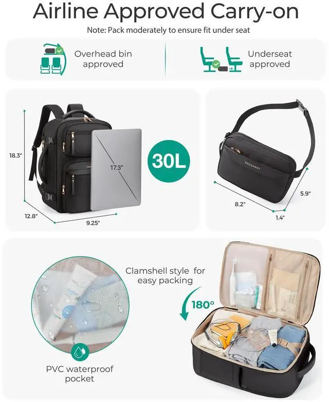 Accessible: Designed with a 180 clamshell opening, this roomy backpack for women allows for efficient packing and offers ample space comparable to a carry-on luggage, making travel backpack carry on flight approved perfect for 1-3 days trips or daily commutes. weekender backpack for women accommodates everything from work essentials to weekend getaway gear with ease ^^