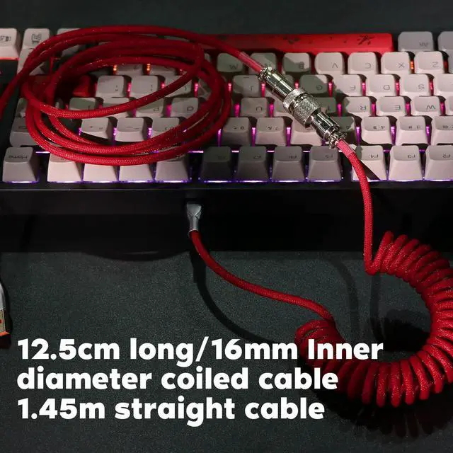 EPOMAKER Mix 1.8 m Coiled Type-C to USB A TPU Mechanical Keyboard Space Cable with Detachable Aviator Connector for Gaming Keyboard and Cellphone (Red)