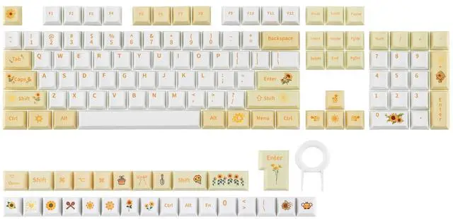 Compatibility with Mechanical Keyboard: Well packed with 133 keys, the Sunflower Keycap Set is compatible with 60%, 65%, 70%, 75%, 80%, 87%, 96% and full-sized mechanical keyboards. The inclusion of both ISO and ANSI enter key makes this keycap set competent for universal use, perfect for most mainstream gaming keyboards with MX style mechanical switches