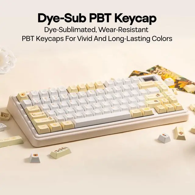 Long-Lasting Dye Sublimation Keycaps: Dye-sublimation is a highly effective printing process that produces professional-grade graphics. This method ensures images resist cracking and wear even after repeated use, guaranteeing visuals remain vibrant for years to come. Leveraging this technique, the EPOMAKER Sunflower keycaps deliver exceptionally vivid colors and striking designs ^^ Comfortable Cherry