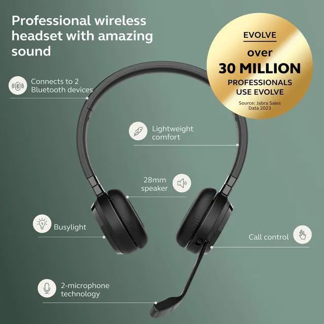 Jabra Evolve 65 TE keeps you focused on your work with the noise-isolating design. The integrated Busylight can be seen from all sides, so youre not disturbed. Our headset provides rich audio quality for calls and works with Microsoft Teams and all other leading communications platforms. Plug and Play with no additional configuration required, and directly mute yourself from the headset with a special control feature when using Microsoft Teams. 28mm speakers, together with the soft leatherette ear cushions, provide comfortable wearing, superior sound, and music clarity. Combined with the ultra-soft on-ear headband, you can wear our headset easily for hours.