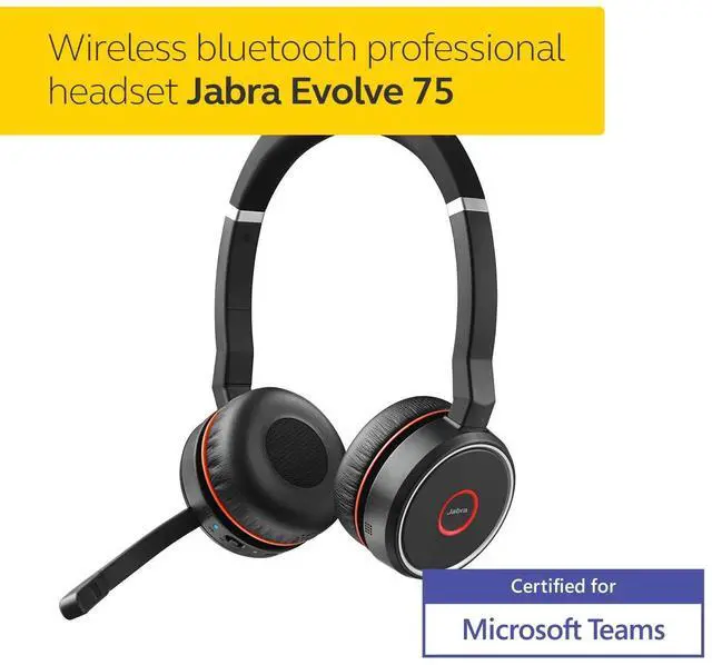 Enjoy superior wireless connectivity and amazing sound for calls and music with the Jabra Evolve 75 Wireless Headset. Its a telework headset with a range of up to 30 meters or 100 feet, you can work away from your desk and still maintain quality sound and service. Overcome interruptions with an integrated busylight that acts as a do-not-disturb sign for colleagues. Plus, the advanced noise cancellation microphone allows for crystal clear calls and improved agent focus. This Jabra headset works with all leading Unified Communication platforms, and is optimized for MS Teams, Cisco, and more.