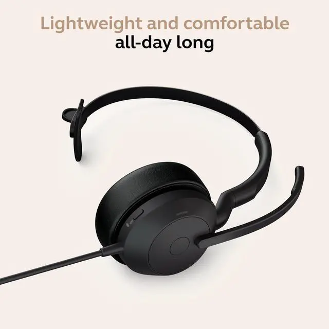 Whether you're in the office or on the go, this headset adapts to your lifestyle with ease. With its ergonomic design, this wired headset with mic delivers unparalleled comfort with cushioned headbands and soft earcups that make all-day wear a breeze. Choose between dual-ear and single-ear variants to best suit your needs. The 28mm speakers are not just great for calls but also provide an immersive music experience. Setup is simple and hassle-free, thanks to the included USB-A and USB-C adapter. The Evolve2 50 is also certified for Microsoft Teams, Zoom, Google Meet, and works effortlessly with all online meeting platforms, including Chromebooks.