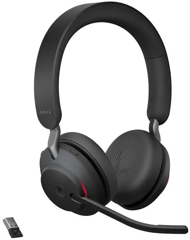 Jabra Evolve2 65 Wireless On-Ear Headset Especially in a noisy or restless environment, a high-quality headset is important. Evolve2 65 helps you focus on your work thanks to its noise-isolating design. The integrated and improved Busylight lights up when you are making calls and prevents possible conversation interruptions. The swivelling microphone boom and 3 microphones provide outstanding call quality, whether in the office or on the go. The MS certificate guarantees a perfect connection with Microsoft Teams. The Evolve2 65 wireless headphones impress with up to 37 hours of battery life. Enjoy the freedom to answer calls or listen to your favourite music from anywhere.